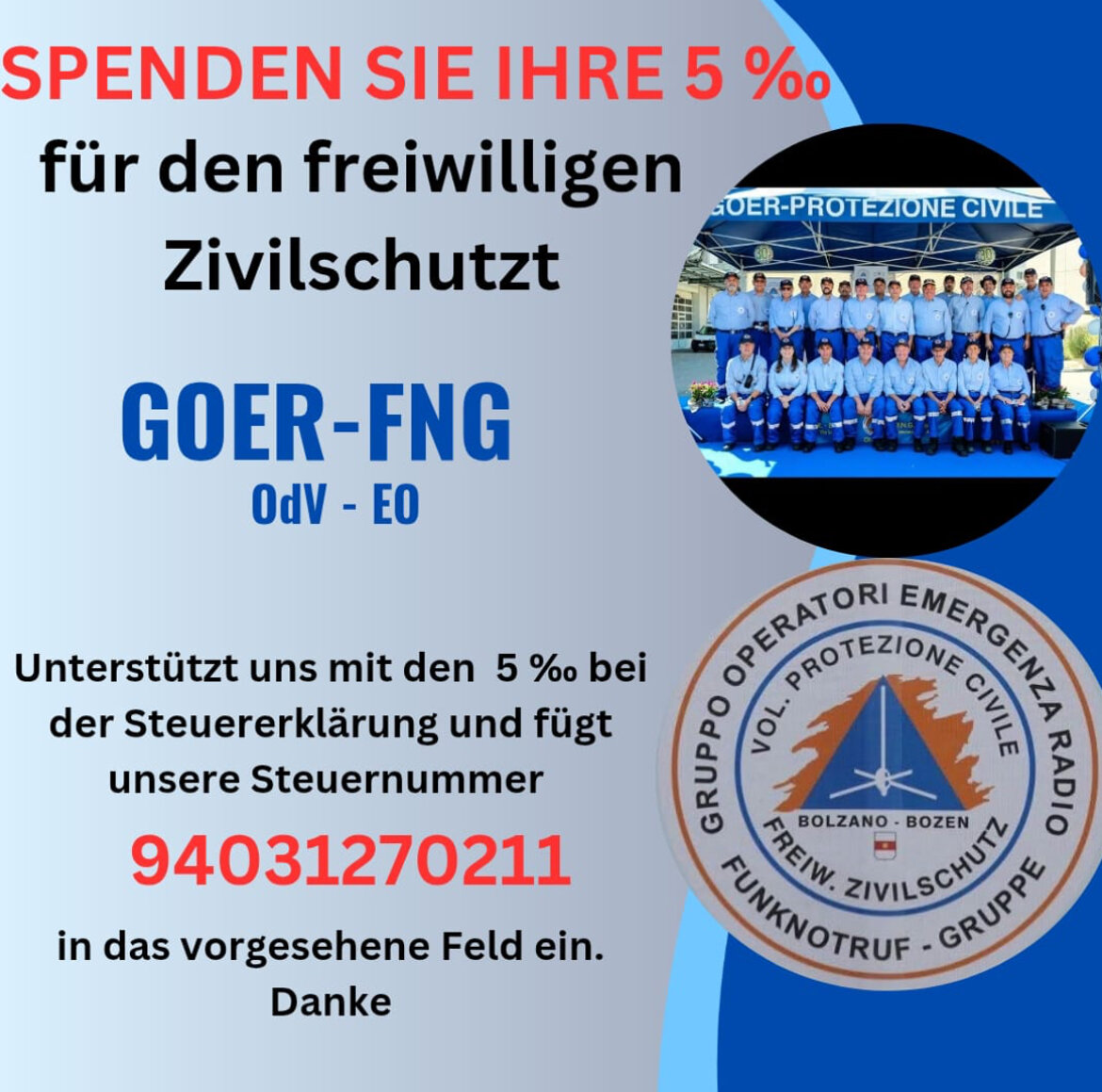 Unser Verein besteht aus Freiwilligen deutscher und italienischer Muttersprache, die die Leidenschaft für Funkgeräte und den Nächsten zu helfen teilen.