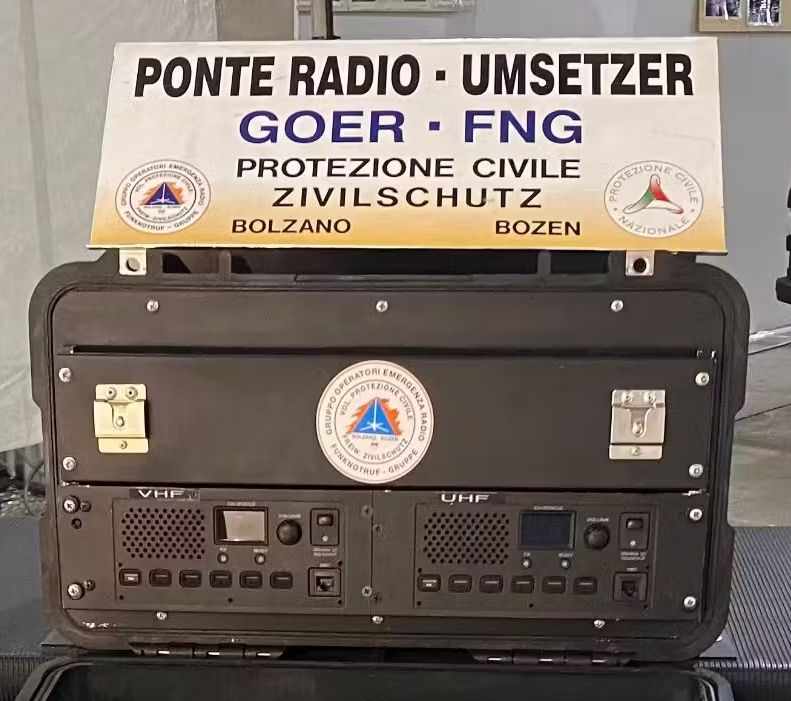 Ultimo arrivo nella famiglia del Goer è un ripetitore Analogico/Digitale a Zaino. Molto utile durante i servizi eseguiti in trasferta, per arrivare in zone impervie, dove l'area non è sotto la copertura del Ripetitore fisso o del Ripetitore mobile.